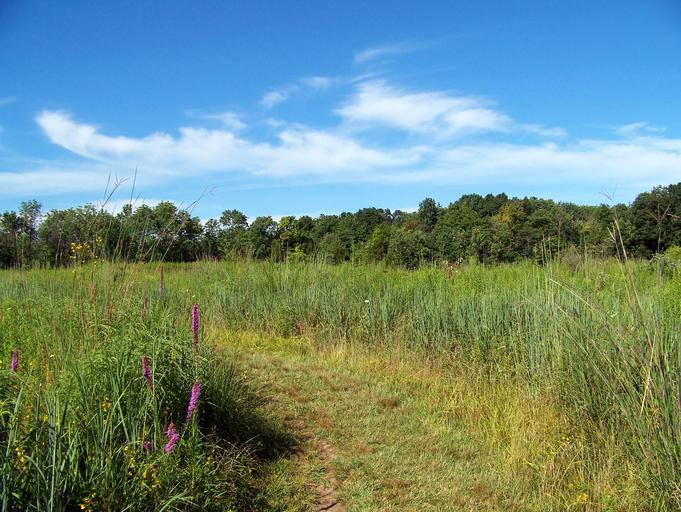 Keywords: field weeds trees summer landscape sky clouds outdoor natural countryside