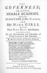 | Keywords: Fielding governess2.jpg Title page from The Governess 1749 edition by Sarah Fielding 1710-1768 The author died over 100 years ago http //en wikipedia org/wiki/File Fielding_governess2 jpg 1749 author PD-old-100 Title pages in English Children's book pages 1749 books Sarah Fielding Title pages from the United Kingdom Epigraphs in literature |