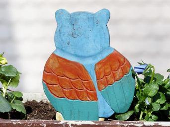 Keywords: fig bird wood owl carved painted colorful color art deco decorative decoration balcony garden flower box