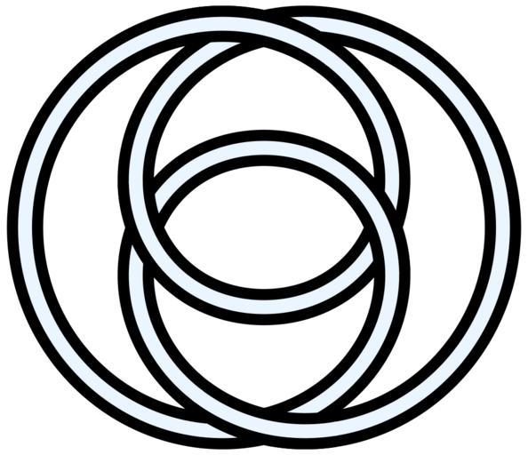 | Keywords: Figure8knot-rose-limacon-curve.svg The figure-eight knot of mathematical knot theory depicted in symmetric form The curves were generated from the polar coordinates equation r b+sin aθ which is a slight generalization of the Limaçon and Rose/rhodonea curves using parameters a 2/3 and b 2 The same curve with a different rotation about the origin is generated by the following non-polar parametric equations <math> \begin align x \left 2 + \cos 2t \right \cos 3t \\ y \left 2 + \cos 2t \right \sin 3t \\ \end align </math> For an equivalent simple square depiction see File Figure8knot-math-square-alternate svg Self-made graphic generated from the following vector PostScript source-code <pre> 300 396 translate 45 rotate 72 5 dup scale 1 setgray 175 setlinewidth/z w lineto for stroke def/ecc 2 def/w /th exch def th 2 mul 3 div/x exch def x sin ecc add th cos mul x sin ecc add th sin mul def/y dup w moveto 1 add 1 def 0 y 1080 w lineto for closepath gsave 0 setgray 455 setlinewidth stroke grestore stroke 0 setgray 455 setlinewidth 24 y 64 z 296 y 336 z 564 y 604 z 836 y 876 z 175 setlinewidth 1 setgray 23 y 65 z 295 y 337 z 563 y 605 z 835 y 877 z showpage EOF</pre> 2010 AnonMoos thumb center Figure-eight knots knot theory Knots and links on transparent background Images with PostScript source code Outline knots and links 2-fold rotational symmetry |