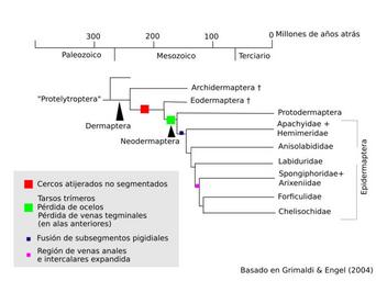 | Keywords: File-DermapteraEvolES.svg es Ilustración de la filogenia del orden de insectos Dermaptera basada en Grimaldi Engel 2004 Evolution of the Insects Cambridge University Press 2016-01-27 https //commons wikimedia org/wiki/File DermapteraEvol svg https //commons wikimedia org/wiki/User Shyamal other versions cc-zero Dermaptera |