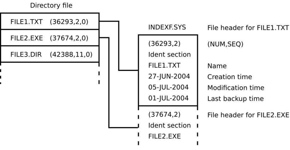 | Keywords: Files 11 directory structure.svg This diagram shows an example directory containing 3 files and the way each filename is mapped to the INDEXF SYS entry each INDEXF entry contains more information; only the first few items are shown here own ; based on File Files 11 directory structure png 2004-08-05 Kate talk vectorization own en wikipedia Kate Data management Networks OpenVMS PDP-11 | ||||