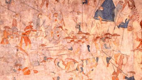 | Keywords: FileSegesser II hide painting - detail 2.jpg en Detail of hide painting sent to Switzerland from Sonora Mexico in 1758 by Philipp Segesser 1 September 1689 - 28 September 1762 Assumed to represent the 1720 defeat of the Villasur expedition Supposedly lying dead to the left in a red coat is Pedro de Villasur himself before 1758 https //www flickr com/photos/knme/sets/72157625516362168/ New Mexico PBS author other versions Custom license marker 2016 04 02 PD-Art PD-old-auto Mexico 1758 History of Nebraska History of New Mexico Native American hide painting |