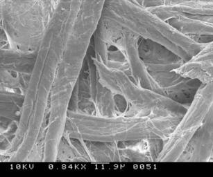 Keywords: Filter paper 840 3x3 copy.jpg en A scan of filter paper magnified 840 times under a scanning electron microscope Own MWolfin 2010-02-18 Paper filters Scanning electron microscopic images cc-zero