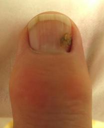 Keywords: Finger nail after eradication of paronychia.JPG en Finger nail damage after eradication of paronychia with antibiotics and spontaneous drainage but not surgery own Wmpearl 2016 Paronychia disease Diseases and disorders of the nails Cc-zero