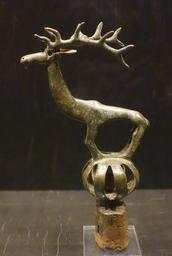 | Keywords: Finial with deer standing on rattle, Xiongnu, 600-400 BC, bronze - Östasiatiska museet, Stockholm - DSC09568.JPG en Exhibit in the Östasiatiska museet Stockholm Sweden This artwork is old enough so that it is in the public domain Photography was permitted in the museum without restriction 2014-09-13 07 02 04 own Daderot other versions cc-zero Metalwork of Xiongnu in Östasiatiska museet Uploaded with UploadWizard | ||||