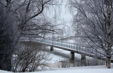 Keywords: finland bridge architecture river water frozen icy landscape forest trees woods nature outside country countryside
