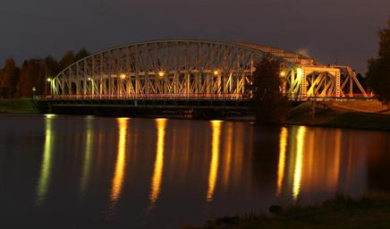 Keywords: finland bridge river water night evening architecture lights reflections silhouettes trees nature outside
