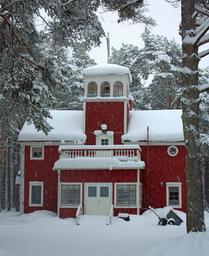 Keywords: finland building church winter snow trees storm snowing nature covered frost branches