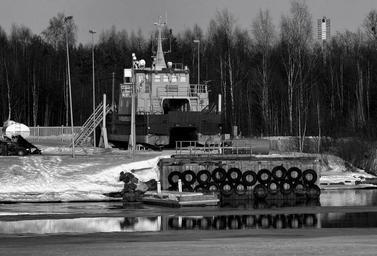 Keywords: finland landscape scenic forest trees ship dock pier black and white winter snow ice water reflections river bay