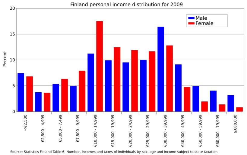 MAKE A MEME View Large Image Finland personal income by sex-2009.svg translate yes en Personal income distribution of Finland by sex in 2009 Data source Statistics Finland http //pxnet2 stat fi/PXWeb/pxweb/en/StatFin/ Table 6 Number incomes and taxes of individuals by ...
