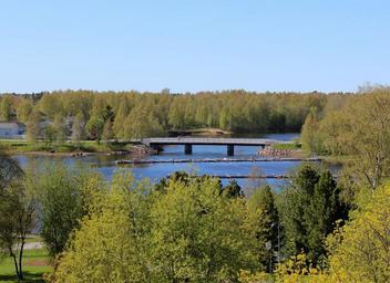 Keywords: finland sky clouds bridge river water nature outside forest trees woods country countryside summer spring lake