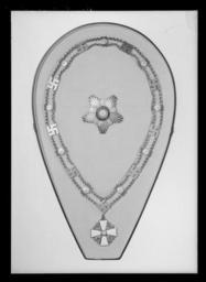 | Keywords: Finlands Vita Rosorden - Livrustkammaren - 52858.tif Vitemaljerat georgskors av förgyllt silver Mellan korsarmarna övre delen av det finska svärdbärande krönta lejonet av förgyllt silver På åtsidan en medaljong täckt med mörkblå emalj däri vitemaljerad heraldisk ros konturer i guld På den övre korsarmen ett triangulärt spiralformigt bladornament därpå en fyrkantig bygel i vilket kedjan nr 1366 är fäst original caption Finlands Vita Rosorden - LRK 1365-1367 1919 silver - enamel Färg vit material emalj g 293 m kedja size mm 54 66 LRK Gustaf V av Sverige place of origin FI original filename LN_B12076_014956 37930 inventory number LRK 1365 52858 CC0 Finlands Vita Rosorden - Livrustkammaren - 52858-negative tif Order of the White Rose Media contributed by LSH unmatched creator Media contributed by LSH 2013-10 |