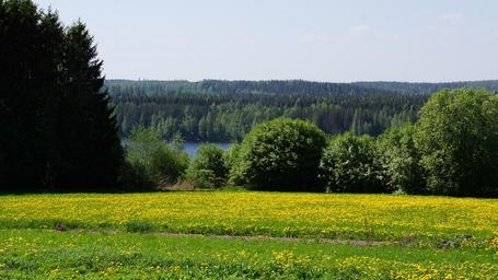 Keywords: finnish landscape field forest tarvaanrannassa voikukkapelto lake early summer