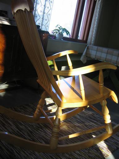 Keywords: Finnish rocking chair.JPG Typical Finnish wooden rocking chair Own 2008-03-24 SeppVei Windsor chairs rocking chairs Rocking chairs Furniture in Finland