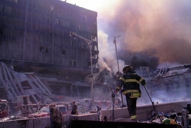 | Keywords: outdoor Fire fighters amid smoking rubble following September 11th terrorist attack on World Trade Center, New York City. Sept. 11, 2001. Image. Retrieved from the Library of Congress, www.loc.gov/pictures/item/2002719363/. (Accessed September 03, 2016.) Call Number: LC-A05- D29 [item] [P&amp;P] Forms part of: Collection of unattributed photographs ... The 250 color slides made at the World Trade Towers in New York City on September 11, 2001, received from the New York District Attorney's office from an unattributed photographer, are in the public domain. Privacy and publicity rights may apply. These slides were received from the New York District Attorney's office with the photographer relinquishing any and all copyright and right of attribution. Therefore, the photographer's name will not be associated with these photographs. Note – This image has been digitally adjusted for one or more of the following: - fade correction, - color, contrast, and/or saturation enhancement - selected spot and/or scratch removal - cropped for composition and/or to accentuate subject matter - straighten image Fire fighters amid smoking rubble following September 11th terrorist attack on World Trade Center, New York City. Sept. 11, 2001. Image. Retrieved from the Library of Congress, www.loc.gov/pictures/item/2002719363/. (Accessed September 03, 2016.) Call Number: LC-A05- D29 [item] [P&P] Forms part of: Collection of unattributed photographs ... The 250 color slides made at the World Trade Towers in New York City on September 11, 2001, received from the New York District Attorney's office from an unattributed photographer, are in the public domain. Privacy and publicity rights may apply. These slides were received from the New York District Attorney's office with the photographer relinquishing any and all copyright and right of attribution. Therefore, the photographer's name will not be associated with these photographs. Note – This image has been digitally adjusted for one or more of the following: - fade correction, - color, contrast, and/or saturation enhancement - selected spot and/or scratch removal - cropped for composition and/or to accentuate subject matter - straighten image <em>Fire fighters amid smoking rubble following September 11th terrorist attack on World Trade Center, New York City</em>. Sept. 11, 2001. Image. Retrieved from the Library of Congress, <a href="http://www.loc.gov/pictures/item/2002719363/" rel="nofollow">www.loc.gov/pictures/item/2002719363/</a>. (Accessed September 03, 2016.)
