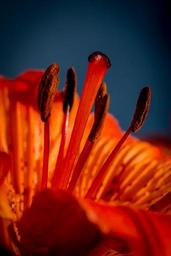 Keywords: fire-lily lilium bulbiferum stamen anther stylus stamp scar carpel tepals tepal pollen blossom bloom lily light orange red bright red flower botany flora nature plant macro close