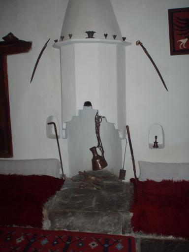 Keywords: Fire place Berat, Albania.JPG a fire place in the ethnographic museum of Berati Albania On the right side a rare swordcane own taken by myself 2006-08 User Terfili Ottoman architecture in Albania Berat Ethnographic Museum