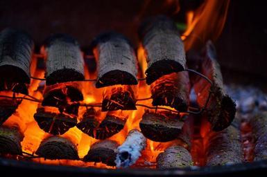 Keywords: fire wood embers flame hot burn yellow brand