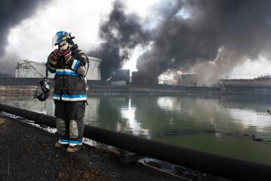 Keywords: firefighter fireman fire blaze flames hot dangerous heat equipment protection rescue safety burn
