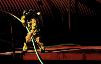 Keywords: firefighter training live fire protection danger equipment hose helmet spray nozzle job practice fireman safety service