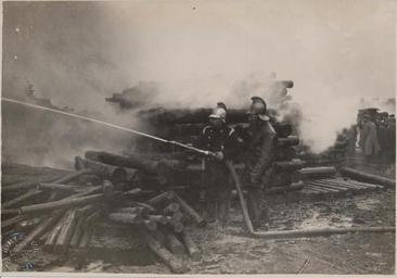 | Keywords: fire firefighters timber yard timberyard pit props pitprops hartlepool 1922 feuerwehr brand feuer feuerlöschen unglück Photograph of the Great Timber Yard Fire in Hartlepool, 1922. Shows firefighters battling the blaze, while piles of smouldering pit props lie littered beside them. Firefighters from around 5 different brigades were scrambed from across the North East to help fight the Inferno. These included the NER, Hartlepool, West Hartlepool, Stockton, Middlesbrough and Gateshead fire services. Photograph Collection No : 259 Images from Hartlepool Cultural Services that are part of The Commons on Flickr are labeled 'no known copyright restrictions' indicating that Hartlepool Cultural Services is unaware of any current copyright restrictions on these images either because the copyright is waived or the term of copyright has expired. Commercial use of images is not permitted. Applications for commercial use or for higher quality reproductions should be made to Hartlepool Cultural Services, Sir William Gray House, Clarence Road, Hartlepool, TS24 8BT. When using the images please credit 'Hartlepool Cultural Services'. Photograph of the Great Timber Yard Fire in Hartlepool, 1922. Shows firefighters battling the blaze, while piles of smouldering pit props lie littered beside them. Firefighters from around 5 different brigades were scrambed from across the North East to help fight the Inferno. These included the NER, Hartlepool, West Hartlepool, Stockton, Middlesbrough and Gateshead fire services. Photograph Collection No : 259 Images from Hartlepool Cultural Services that are part of The Commons on Flickr are labeled 'no known copyright restrictions' indicating that Hartlepool Cultural Services is unaware of any current copyright restrictions on these images either because the copyright is waived or the term of copyright has expired. Commercial use of images is not permitted. Applications for commercial use or for higher quality reproductions should be made to Hartlepool Cultural Services, Sir William Gray House, Clarence Road, Hartlepool, TS24 8BT. When using the images please credit 'Hartlepool Cultural Services'. |