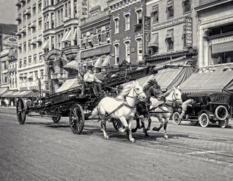 Keywords: firefighting apparatus old vintage historical horse-drawn water cannon fireman