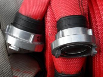 Keywords: firehose snake fire a fire truck red emergency