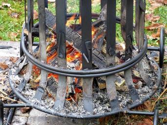 Keywords: firepit fire flames brand glow hot heat wrought iron basket burn wood