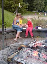 Keywords: fireplace grill fire embers girl child sport play playground veltishof youth hostel meadow forest sand game devices nature joy