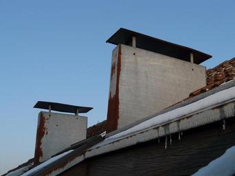 Keywords: fireplace roof chimney smoke exhaust gases old rusted heat