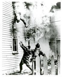 | Keywords: FireResearch 042.jpg Two firefighters on ground level assisting a third in a second-story window National Institute of Standards and Technology National Institute of Standards and Technology The images in the Fire Research Photographic Collection are in the public domain and are not subject to copyright in the United States However please pay special attention to the individual works to make sure there are no copyright restrictions indicated Individual works may require securing other permissions from the original copyright holder Use of the images from NIST Digital Collections is not restricted but a statement of attribution is required Please use the following attribution statement National Institute of Standards and Technology Digital Collections Gaithersburg MD 20899 PD-USGov National Bureau of Standards National Institute of Standards and Technology Fire in science |