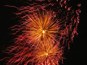 Keywords: fireworks celebration red festival sky black gold night holiday celebrate explosion