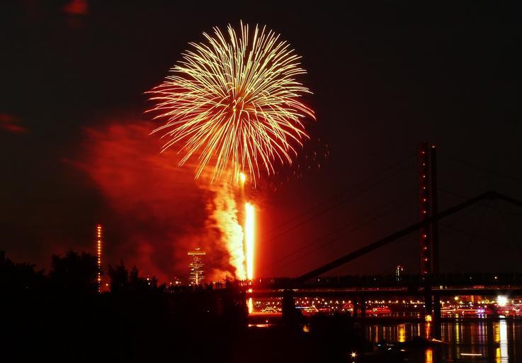 Keywords: fireworks pyrotechnics fireworks art event düsseldorf shower of sparks light night sky sky human bridge rheinbrücke lights radio sylvester new year's day night celebration rocket fireworks rockets