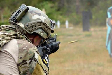 | Keywords: Firing down range.jpg en Capt Nathan Maxton fires at a moving target Aug 20 2014 during the Cascade Challenge at Range 103 next to North Fort Lewis at Joint Base Lewis-McChord Wash Maxton is a tactical air control party member with the 3rd Air Support Operations Squadron The participants shot the Colt M-4 carbine assault rifle and the Beretta M-9 pistol and were graded on their time of completion and the amount of times they hit the target U S Air Force photo by Airman 1st Class Keoni Chavarria/Released 2014-08-20 https //www flickr com/photos/usairforce/14887415128/ US Air Force other versions PD-USGov Joint Base Lewis-McChord Target practice Males with M4 carbine 3d Air Support Operations Squadron Tactical Air Control Party |