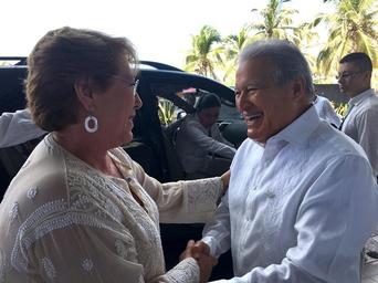 Keywords: people outdoor Presidente Salvador Sánchez Cerén saluda Michelle Bachelet, Presidenta de Chile. Presidente Salvador Sánchez Cerén saluda Michelle Bachelet, Presidenta de Chile.