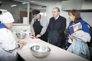| Keywords: people indoor La firma de convenio entre UMAG y la Corporación Manos de Hermanos se realizó el día Martes 7 de Abril de 2015 en el Centro Laboral de la Corporación ubicado en la Calle Cirujano Videla # 34. El objetivo de este convenio es que los alumnos de UMAG puedan realizar prácticas profesionales en este centro laboral. La corporación Manos de Hermanos acoge a adultos con capacidades diferentes entre 26 y 50 años, les entrega herramientas para su autonomía, en el ámbito de creatividad artística, mejora de la motricidad, cocina y aseo. Manos de Hermanos es una corporación privada sin fines de lucro, que se financia mediante proyectos del gobierno regional, además de aportes voluntarios de privados. En la Foto (de izq a der): Dr. Juan Oyarzo (Rector UMAG) junto a Ruth Ortiz (Secretaria UMAG) visitan Taller de Conina La firma de convenio entre UMAG y la Corporación Manos de Hermanos se realizó el día Martes 7 de Abril de 2015 en el Centro Laboral de la Corporación ubicado en la Calle Cirujano Videla # 34. El objetivo de este convenio es que los alumnos de UMAG puedan realizar prácticas profesionales en este centro laboral. La corporación Manos de Hermanos acoge a adultos con capacidades diferentes entre 26 y 50 años, les entrega herramientas para su autonomía, en el ámbito de creatividad artística, mejora de la motricidad, cocina y aseo. Manos de Hermanos es una corporación privada sin fines de lucro, que se financia mediante proyectos del gobierno regional, además de aportes voluntarios de privados. En la Foto (de izq a der): Dr. Juan Oyarzo (Rector UMAG) junto a Ruth Ortiz (Secretaria UMAG) visitan Taller de Conina |