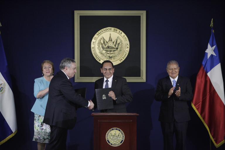 | Keywords: indoor Presidenta de Chile , Michelle Bachelet y Presidente de El Salvador , Salvador Sánchez Cerén, firma de acuerdos entre Universidades Presidenta de Chile , Michelle Bachelet y Presidente de El Salvador , Salvador Sánchez Cerén, firma de acuerdos entre Universidades |