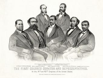 | Keywords: First Colored Senator and Representatives.jpg Colored Senator and Representatives in the 41st and 42nd Congress of the United States Left to right Senator Hiram Revels of Mississippi Representatives Benjamin Turner of Alabama Robert DeLarge of South Carolina Josiah Walls of Florida Jefferson Long of Georgia Joseph Rainey and Robert B Elliot of South Carolina Première sénateur coloré et représentants au Congrès 41e et 42e aux États-Unis De gauche à droite Le sénateur Hiram Revels du Mississippi représentants Benjamin Turner de l'Alabama Robert DeLarge de Caroline du Sud Josiah Walls de la Floride Jefferson Long de la Géorgie Joseph Rainey et Robert B Elliot de Caroline du Sud 1872 Scan from http //www loc gov/pictures/item/98501907/ Library of Congress Restoration from http //adamcuerden deviantart com/gallery/ /d56h6gm Creator Currier and Ives Restoration Adam Cuerden Unedited TIF File First Colored Senator and Representatives in the 41st and 42nd Congress of the United States tiff PNG lossless version of this image File First_colored_senator_and_reps png Assessments 1 1 File First colored senator and reps jpg First colored senator and reps jpg ;Restoration by Adam Cuerden While attribution is requested this restoration is licenced CC-zero ;Library of Congress holdings PD-US 1872 engravings African American history of the 1870s Uploaded with UploadWizard Politicians of the Republican Party United States Featured pictures of people of the United States Members of the United States House of Representatives Senators of the United States Portraits by Currier and Ives Images from deviantART Hiram Revels 1872 works in the United States Joseph Rainey Benjamin Sterling Turner |