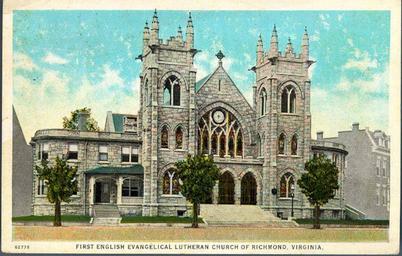 | Keywords: vcu libraries vculibraries vcu digital collections vcudigitalcollections architecture photo border outdoor building drawing skyline Description: The First English Evangelical Lutheran Church, Southwest corner Monument Avenue and Lombardy Street, Richmond, Virginia. In the front window is seen Luther's Coat of Arms described by him as follows: 'There should be a black cross in the naturally red heart; for from the heart we must believe in the Crucified One in order to be saved; the cross, indeed, causes pain and mortification, yet it does not kill, but rather promotes the vital energy of the heart. Such a heart should stand on a white rose, to show that faith imparts joy, comfort and peace, and it should be white, because that is the color of spirits and of angels, and the joys not of the world. The rose, finally, should be placed in a sky-blue field, as the joy is already the beginning of the heavenly, and is comprehended in hope of heaven, and that field should be encircled by a golden ring, because heavenly salvation endures forever and is valuable above all other possessions.': Manufacturer: Southern Bargain House, Richmond, Va. Date Postmarked: Not postmarked. Rights: This item is in the public domain. Acknowledgement of the Virginia Commonwealth University Libraries as a source is requested. Reference URL: dig.library.vcu.edu/u?/postcard,106 Collection: Rarely Seen Richmond: Early twentieth century Richmond as seen through vintage postcards Description: The First English Evangelical Lutheran Church, Southwest corner Monument Avenue and Lombardy Street, Richmond, Virginia. In the front window is seen Luther's Coat of Arms described by him as follows: 'There should be a black cross in the naturally red heart; for from the heart we must believe in the Crucified One in order to be saved; the cross, indeed, causes pain and mortification, yet it does not kill, but rather promotes the vital energy of the heart. Such a heart should stand on a white rose, to show that faith imparts joy, comfort and peace, and it should be white, because that is the color of spirits and of angels, and the joys not of the world. The rose, finally, should be placed in a sky-blue field, as the joy is already the beginning of the heavenly, and is comprehended in hope of heaven, and that field should be encircled by a golden ring, because heavenly salvation endures forever and is valuable above all other possessions.': Manufacturer: Southern Bargain House, Richmond, Va. Date Postmarked: Not postmarked. Rights: This item is in the public domain. Acknowledgement of the Virginia Commonwealth University Libraries as a source is requested. Reference URL: dig.library.vcu.edu/u?/postcard,106 Collection: Rarely Seen Richmond: Early twentieth century Richmond as seen through vintage postcards |