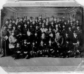 Keywords: First General Meeting of the Odessa Committee, Odessa, May 1890.jpg en The first general meeting of the Odessa Committee In the front row from right to left 4 Ahad HaAm 6 Yehoshua Eisenshteft In the second row 2 Shmuel Barbash 4 L Pinsker 5 Shmuel Mohilever 6 Avraham Grinberg 9 Jacob Mazeh In the third row 9 Ze'ev Tyomkin 4 Yisrael Jasinowski שמוא מוה יבר; 2 ד ר יהודה ייב פינסקר; 3 אברה גרינברג; 4 ש מה א תר פריץ; 5 מנשה מרג ית; 6 שמוא ברב ש; 7 משה פישרוביץ; 8 אשר גינצברג אחד הע ; 9 יעקב ובארסקי; 10 יהושע אייזנשטט ברזי י ; 11 מרדכי רבינוביץ בן-עמי ; 12 ירתמיא שטראקמטה שטארקמיט ; 13 גצ טובבין; 14 ו דימיר וו ף פיטקיס; 15 יהודה ייב אמציס בסקי; 16 חיי אטינגר ממזריטש ; 17 משה בר ין מדינבורג ; 18 ש ו רבינוביץ ש ו ע יכ מקייב ; 19 מרדכי פדובה מבריסק ; 20 משה ייב י יינב ו מאודסה ; 21 א כסנדר ה וי צדרבוי מפטרבורג ; 22 מרדכי פו ינקובסקי מקייב ; 23 ד ר יעקב ברנשטיין-כהן מקישינב ; 24 אברה א יהו ובארסקי מבא טה ; 25 ד ר יוסף חזנוביץ; 26 אייזיק בן-טובי מביא יסטוק ; 27 דב בער ירוחמזון משדה בן ; 28 וו ף ווי נסקי מקרמנצ'וג ; 29 ' בריסקין משדה בן ; 30 יהודה יב ברגר מפינסק ; 31 ראובן שוכמן מניקו אייב ; 32 נחו רוטמן רויטמן מקישינב ; 33 א יהו זאב וין אפשטיין; 34 א יעזר קפ ן ורשה ; 35 נח ב וך מווי נה ; 36 ישעיה ברייטמן; 37 ח א גורודישטיאן קישינב ; 38 משה קאמיונסקי מוויניצה ; 39 מרדכי בן ה הכהן מהומ ; 40 זאב ברמן מפטרבורג ; 41 חיי א יעזר מושקאט מבריסק ; 42 ש מה בר יאנד מקישינב ; 43 צבי יב כצמן מחארקוב ; 44 אברה הרכבי מייקטרינוס ב ; 45 יעקב בן-יעקב מווי נה ; 46 ישרא יאסינובסקי מוורשה ; 47 זאב ו דימיר טיומקין מיי יזבתגרד ; 48 נח יפשיץ מקישינב ; 49 חיי פסטרנק מבוהופו ; 50 מיכ מיידנסקי מייקטרינוס ב ; 51 יהושע סירקין ממינסק ; 52 הרב יעקב מזא ה ממוסקבה ; 53 חיי צ'ריקובר מפו טבה ; 54 א' פר מייקטרינוס ב ; 55 ג' באז ינסקי מיי יזבתגרד ; 56 ש ב טַרטָקובסקי צ'רקאסי א מופיע בתצ ו אב השתתף באספה מנח אוסישקין ממוסקבה The David B Keidan Collection of Digital Images from the Central Zionist Archives via http //via lib harvard edu 80/via/deliver/deepLinkItem recordId olvwork456249 componentId FHCL 3223677 Harvard University Library ; better version http //www kedem-auctions com/node/41133 here n/a 1890-05 PD-RusEmpire Zionism Jewish people of the Russian Empire Photographs from the Central Zionist Archives |
