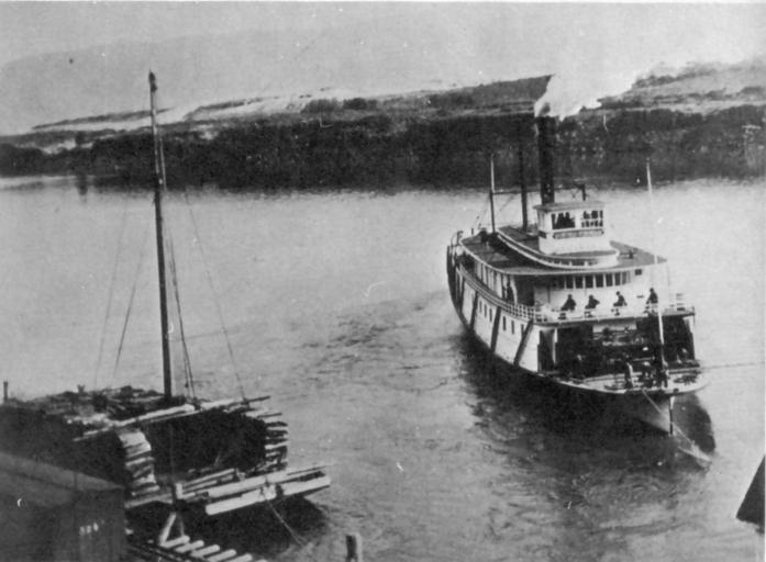 Keywords: First Hassalo at the Dalles wharfboat.jpg Hassalo at The Dalles wharfboat On the left of the photograph can be see a sailing barge loaded with cordwood which was used in large quantities as fuel by steamboats There were two steamboats named Hassalo and one named Hassaloe This is the first Hassalo built in 1880 which did not operate on this stretch of the river after May 26 1888 when the vessel was taken downriver through the Cascades Rapids This view appears to be looking towards the northwest across the Columbia River into what was then the Washington Territory A row of basalt cliffs can be seen on the north side of the river Timmen Fritz Blow for the Landing -- A Hundred Years of Steam Navigation on the Waters of the West Caxton Printers Caldwell ID ISBN 0-87004-221-1 Author 1880 or after but before May 26 1888 PD-old Unknown PD-US Hassalo ship 1880 The Dalles Oregon Barges of the United States Water transport on the Columbia River Sailing barges Firewood Boxcars Rail cars on piers Wharves and quays Columnar basalts in the United States Oregon in the 1880s |
