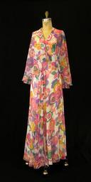 | Keywords: First Lady Betty Ford's colorful chiffon silk gown.jpg Artwork en A colorful chiffon silk gown designed by Albert Capraro for First Lady Betty Ford The dress features a large floral print design snaps down the back long flowing sleeves and a sheer short cape over-lay chiffon fabric 1975 Institution Gerald R Ford Presidential Museum http //www fordlibrarymuseum gov/library/exhibits/dinners/dinners1975 asp Yew object history Worn May 8 1975 “ Prime Minister Lee Kuan Yew of Singapore; September 1975; November 17 1975 “ Mary Tyler Moore Show accession number 1982 33 1 credit line other versions Gerald R Ford Presidential Library and Museum-cooperation PD-USGov Betty Ford dresses in the collection of the Gerald R Ford Presidential Museum Chiffon fabric Flowered dresses Clothing designed by Albert Capraro Multicolor dresses 1970s dresses |