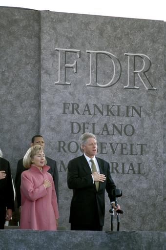 | Keywords: First Lady Hillary Clinton and President Bill Clinton at the 1997 dedication of the Franklin Delano Roosevelt Memorial in Washington, D.C LCCN2011634227.tif 1 transparency color ; 4 x 5 in or smaller Notes Title date and keywords provided by the photographer ; Digital image produced by Carol M Highsmith to represent her original film transparency; some details may differ between the film and the digital images ; Forms part of the Selects Series in the Carol M Highsmith Archive ; Gift and purchase; Carol M Highsmith; 2011; DLC/PP-2011 124 ; Credit line Photographs in the Carol M Highsmith Archive Library of Congress Prints and Photographs Division 1997 Creator Carol M Highsmith Library of Congress Catalog http //lccn loc gov/2011634227 Image download https //cdn loc gov/master/pnp/highsm/16000/16034a tif Original url http //hdl loc gov/loc pnp/highsm 16034 No known restrictions on publication LOC-image highsm 16034 PD-Highsmith Images uploaded by Fæ Photographs by Carol M Highsmith |