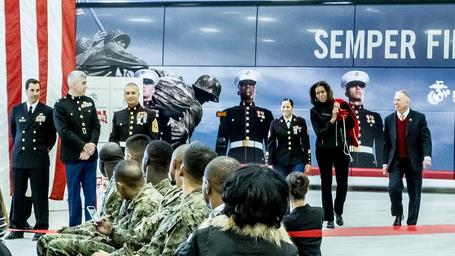 | Keywords: First lady Michelle Obama supports Toys for Tots annual drive 131219-N-WY366-239.jpg en First lady Michelle Obama visited Joint Base Anacostia-Bolling JBAB on Dec 19 2013 to speak to the press and ask them to remind Americans that it is not too late to help make a needy child's Christmas holiday more joyful As she has done in past years the first lady delivered toys and gifts donated by White House staff members to the Marine Corps Foundation's Toys for Tots campaign While at JBAB the first lady visited with members of the White House Communications Agency Toys for Tots volunteers and other military personnel JBAB-based Marines coordinate the Toys for Toys program in the District of Columbia which ensure that thousands of children have new unused toys and gifts to unwrap on Christmas Day JBAB fire and emergency services; public affairs public works and DOD police personnel provided support and coordination for the first lady's visit U S Navy photo by Lt Cmdr Jim Remington <br>Unit Joint Base Anacostia-Bolling 2013-12-19 Lt Cmdr Jim Remington https //www dvidshub net/image/1141797/first-lady-michelle-obama-supports-toys-tots-annual-drive 131219-N-WY366-239 2013-12-19 23 05 WASHINGTON DC US PD-USGov-Military-Navy Michelle Obama in 2013 Joint Base Anacostia-Bolling Images from DoD uploaded by Fæ |