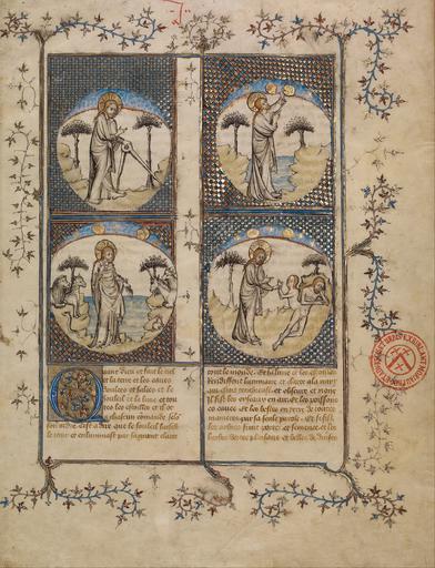 | Keywords: First Master of the Bible historiale of Jean de Berry (French, active about 1390 - about 1400) - Scenes from the Creation - Google Art Project.jpg Google Art Project institution Getty Center active about 1390 - about 1400 6807889 First Master of the Bible historiale of Jean de Berry French French /collection/the-j-paul-getty-museum/artwork/scenes-from-the-creation-first-master-of-the-bible-historiale-of-jean-de-berry-french-active-about-1390-about-1400/6805995/ First Master of the Bible historiale of Jean de Berry French active about 1390 - about 1400 illuminator /artist/first-master-of-the-bible-historiale-of-jean-de-berry/6804936/ 6804936 /collection/the-j-paul-getty-museum/ The J Paul Getty Museum 343005 http //www getty edu/museum 3/12/2012 5 11 57 PM /collection/the-j-paul-getty-museum/artwork/scenes-from-the-creation-first-master-of-the-bible-historiale-of-jean-de-berry-french-active-about-1390-about-1400/6805995/ 1390 about 1390 - 1400 Unicorns Fish Bulls Lions God the Father Adam Eve Tempera colors colored washes gold leaf and ink on parchment 377 6805995 True 1400 3/25/2012 9 23 14 AM lido getty edu-gm-obj5934 http //www getty edu/art/gettyguide/artObjectDetails artobj 5934 http //www getty edu/legal/copyright html Detached leaf 1390 1410 Paris France Creation w298 x h377 cm about 1390 - 1400 False 0 765625 Part scenes-from-the-creation-first-master-of-the-bible-historiale-of-jean-de-berry-french-active-about-1390-about-1400 Scenes from the Creation s 298 Tempera colors colored washes gold leaf and ink on parchment Unicorns Fish Bulls Lions God the Father Adam Eve http //www getty edu/legal/copyright html special url_id qwE3tZPEpcnz0A PD-old-100 MS LUDWIG XIII 3 Getty museum - Leaves from Ancient History up to the Reign of Caesar Google Art Project works by First Master of the Bible historiale of Jean de Berry Creation in miniatures God the Geometer |