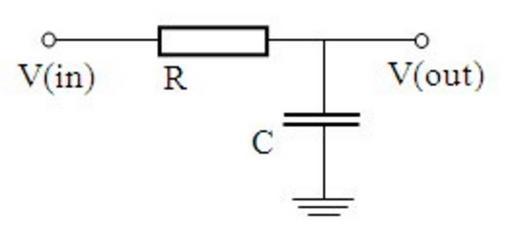 Keywords: First Order Low Pass Filter.jpg en Passive first order low pass filter nl Passief 1ste orde laagdoorlaatfilter own Hellingspaul 2011-01_30 Cc-zero Electronic filters