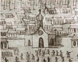 | Keywords: First Parish Church of St Louis New Orleans 1726.jpg New Orleans 1726 Sketch showing first parish Church of St Louis located where the St Louis Cathedral would later be built Detail of Veüe et Perspective de la Nouvelle Orleans View Perspective of New Orleans 1726 Ink and watercolor by Jean-Pierre Lassus Ink watercolor view by Jean-Pierre Lassus from the collection of the Centre des archives d'outre-mer France DFC Louisiane 71-6A via http //www storyvilledistrictnola com/stlouis_cathedral html 1726 Jean-Pierre Lassus PD-old-100 Saint Louis Parish Church New Orleans Veüe et Perspective de la Nouvelle Orleans 1726 Jackson Square New Orleans |