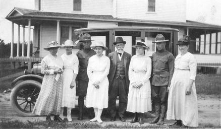 | Keywords: blackandwhite monochrome outdoor black and white 2014-0168m Date: Sunday, June 2, 1918 Location: Camp Funston, Kansas MLA filing: World War I-Kurt R. Galle Collection, Photos 1-210, No.116-135 Original Size: 10.1 x 5.9 cm Source: Louisa M. (Epp) Galle, 1989 Photographer: Notes: From Kurt Galle's "Camp Funston, April 26, 1918-March 24, 1919" album, p.22-120; (L to R) Marna Galle, Linda Galle, Oswin K. Galle, Priscilla Galle, William Galle-father, Clara Galle, Kurt R. Galle, Mrs. William (Anna Krehbiel) Galle; Used in Mennonite Life, December 1989, p.11; Used in History of the U.S. Vol. 2 by DiBacco, 1992 2014-0168m Date: Sunday, June 2, 1918 Location: Camp Funston, Kansas MLA filing: World War I-Kurt R. Galle Collection, Photos 1-210, No.116-135 Original Size: 10.1 x 5.9 cm Source: Louisa M. (Epp) Galle, 1989 Photographer: Notes: From Kurt Galle's "Camp Funston, April 26, 1918-March 24, 1919" album, p.22-120; (L to R) Marna Galle, Linda Galle, Oswin K. Galle, Priscilla Galle, William Galle-father, Clara Galle, Kurt R. Galle, Mrs. William (Anna Krehbiel) Galle; Used in Mennonite Life, December 1989, p.11; Used in History of the U.S. Vol. 2 by DiBacco, 1992 |
