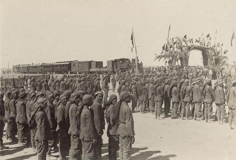 | Keywords: FirstBerSheebaTrain.jpg en First train to arrive in Beersheba 1917 Library of congress link http //memory loc gov/phpdata/pageturner php type contactminor cmIMG1 /pnp/ppmsca/13700/13709/00140t gif agg ppmsca item 13709 caption 139 American Colony Photographic department 1917 PD-Matson Photographs of Palestine in the Matson Collection Sinai and Palestine Campaign |
